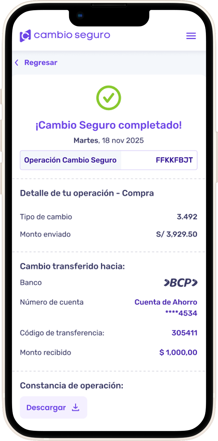 La inscripción de Cambio Seguro Fintech S.A.C. en el Registro de Casas de Cambio de la SBS no implica supervisión, respaldo ni garantía por parte de dicha entidad sobre nuestros productos y servicios.